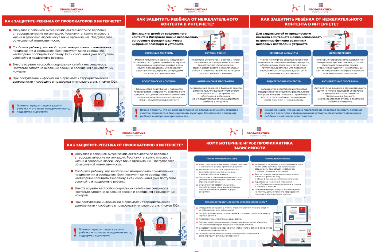 Памятки, посвященные таким вопросам, как методы профилактики экстремизма, работа с родителями и педагогическими работниками, работа с обучающимися, находящимися в группе риска: https://cloud.mail.ru/public/aJFN/Z124efDgk